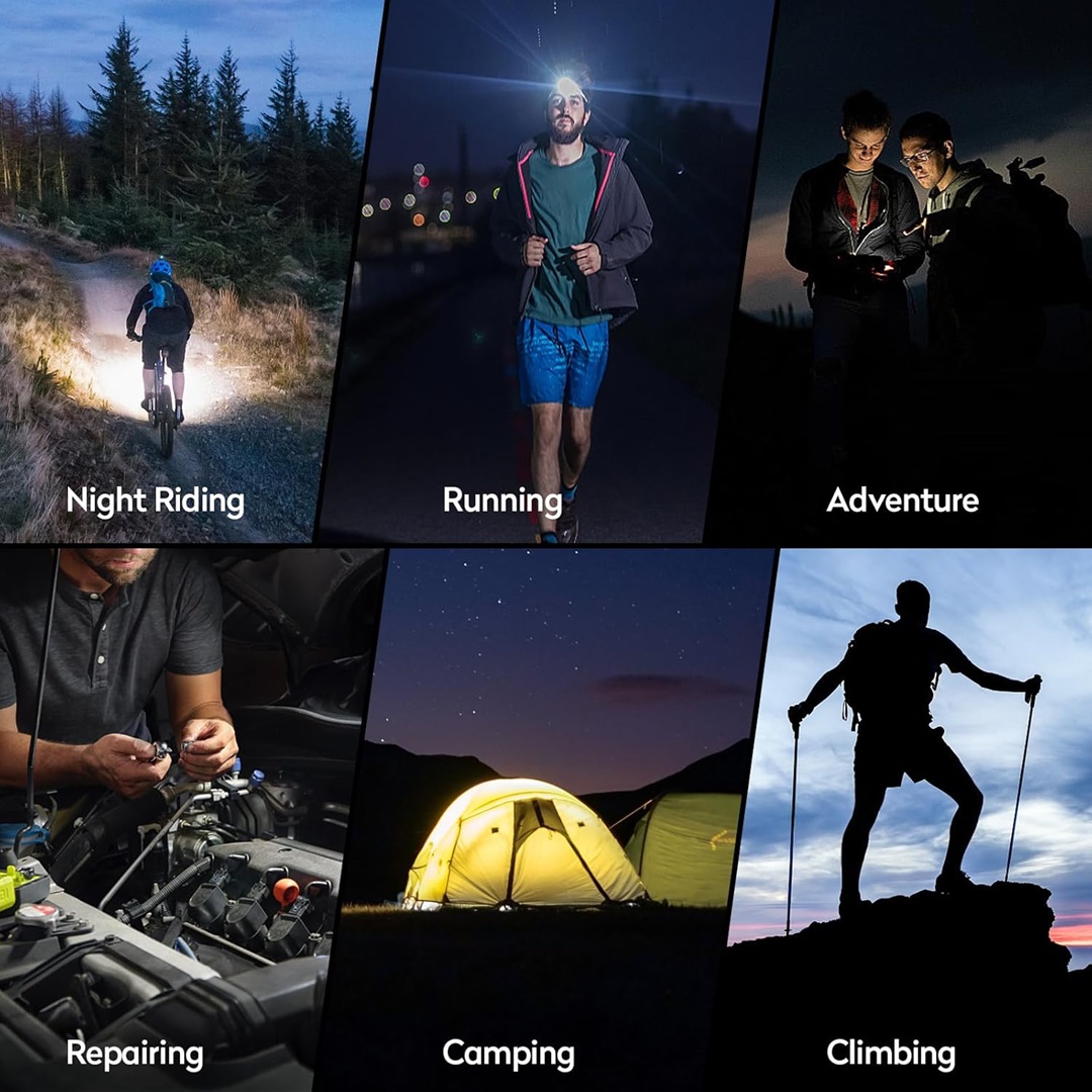 - 【Çok Fonksiyonlu Lamba】 – IP4X su geçirmez kafa lambamız, yağmurlu veya karlı günlerde iş veya açık hava maceraları için kullanılabilir. Eller serbest kafa lambası koşu, yürüyüş, balık tutma, avcılık, yürüyüş, bisiklet, okuma, mağaracılık ve araba onarımı için mükemmeldir.